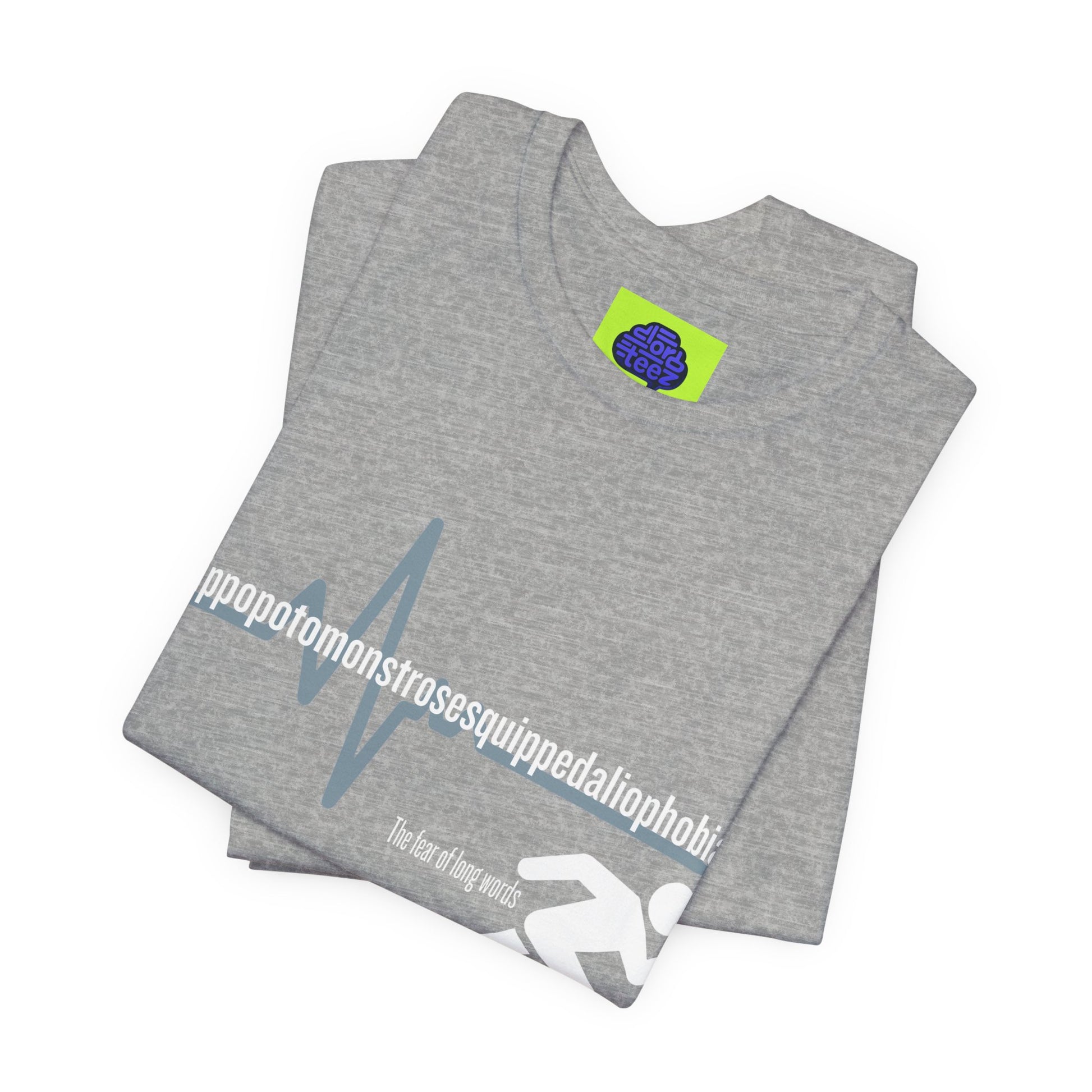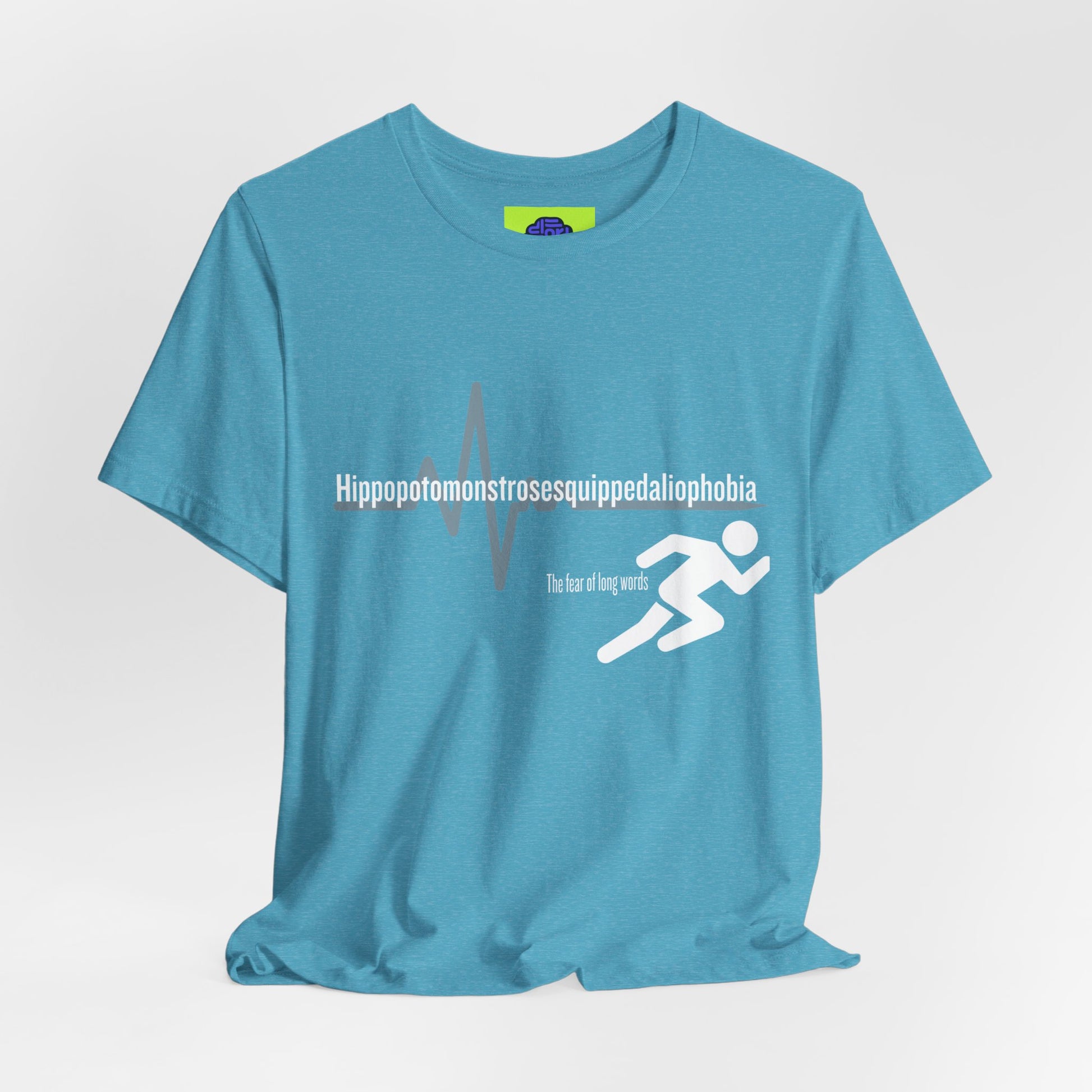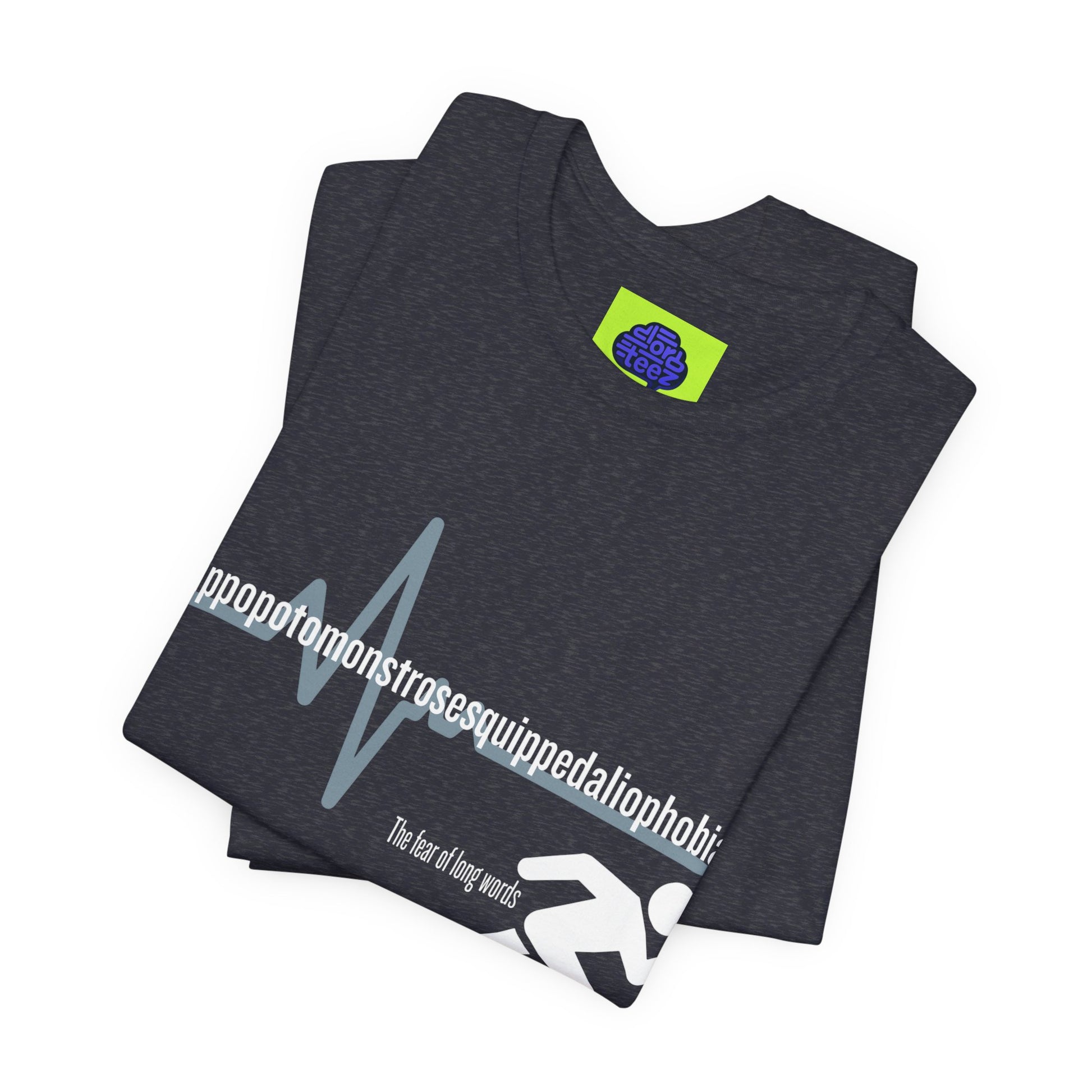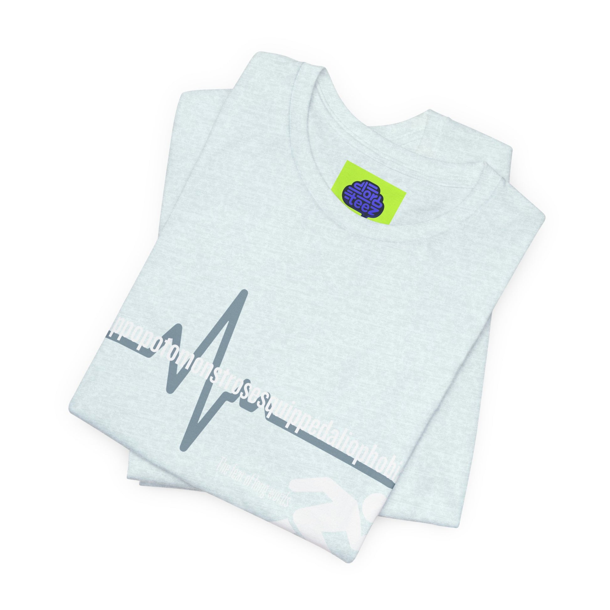 For the person who isn’t afraid of a challenge—just long words. This shirt features the world's most ironic word: the medical term for the fear of long words. Featuring a sleek "heartbeat" graphic that mimics the panic of a 15-syllable word.